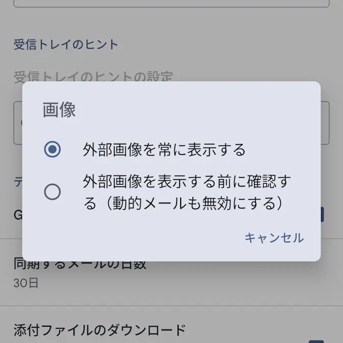AndroidスマホのGmailアプリでメール本文の画像を表示するか設定する方法