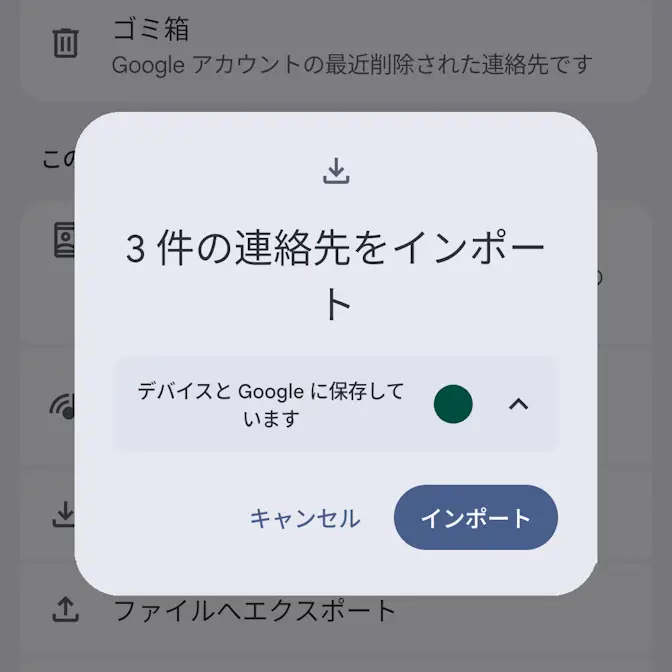 .vcfファイルは「内部ストレージに保存する」「Googleドライブなどのオンラインストレージを使う」「メールで送る」と言ったようにしてAndroidスマートフォン本体から操作できるようにします。