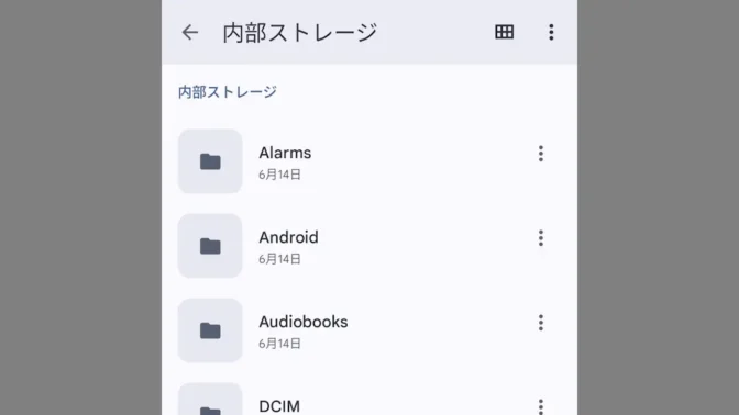 - 内部ストレージの[(対象フォルダ)]より【︙(三点リーダー)】>【フォルダ情報】をタップします。