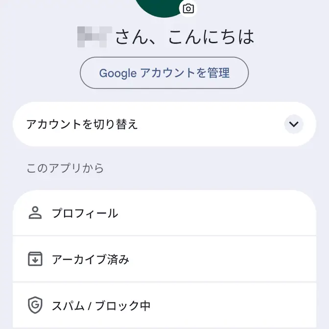 Androidアプリ→GoogleメッセージAndroidアプリ→Googleメッセージ→アカウント→メニュー