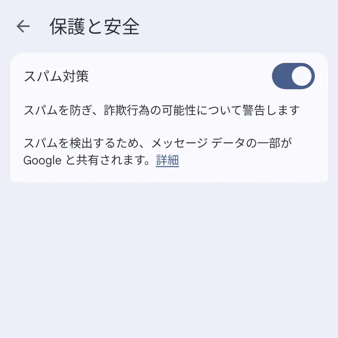 Androidアプリ→Googleメッセージ→メッセージの設定Androidアプリ→Googleメッセージ→メッセージの設定→保護と安全