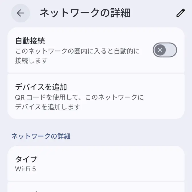 - ネットワークの詳細より自動接続のオン/オフを切り替えます。