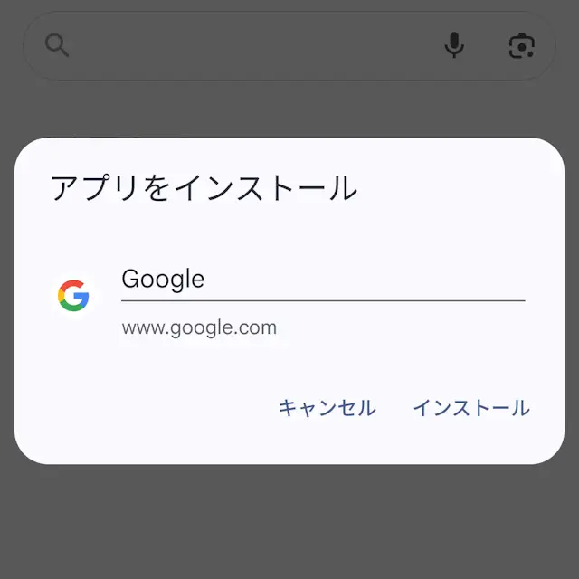 PWA(Webアプリ)に対応したWebサイトの場合はアプリをインストールが表示され、アプリとしてインストールされますが、ショートカットを作成することもできます(後述)。