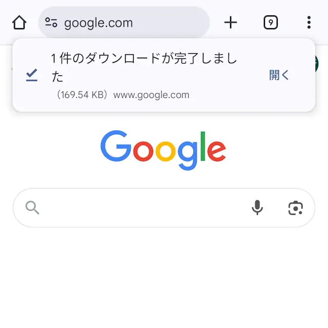 1件のダウンロードが完了しましたより開くをタップし、ダウンロードしたファイルを表示します。