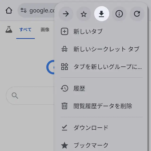 Google Chromeより対象のWebページを表示し︙よりダウンロードボタンをタップします。