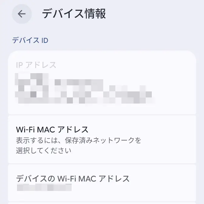 設定のデバイス情報よりIPアドレスに表示されています(長押しするとコピーできます)。