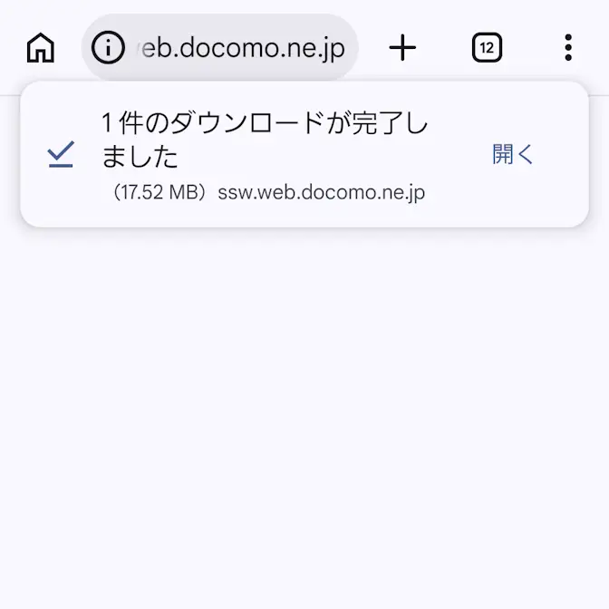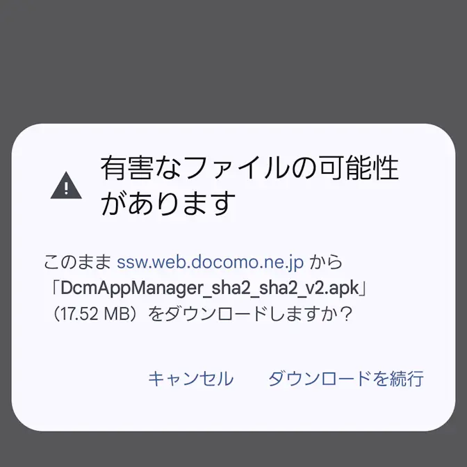 赤い字で書かれた~DcmAppManager_sha2_sha2_v2.apkをタップし、ダウンロードしますか?よりダウンロードを続行をタップします。