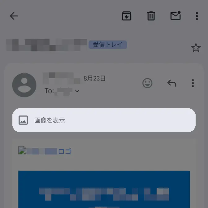 対象のメールより画像を表示をタップし、常に表示させる場合は続けてこの送信者からの画像を常に表示するをタップします。