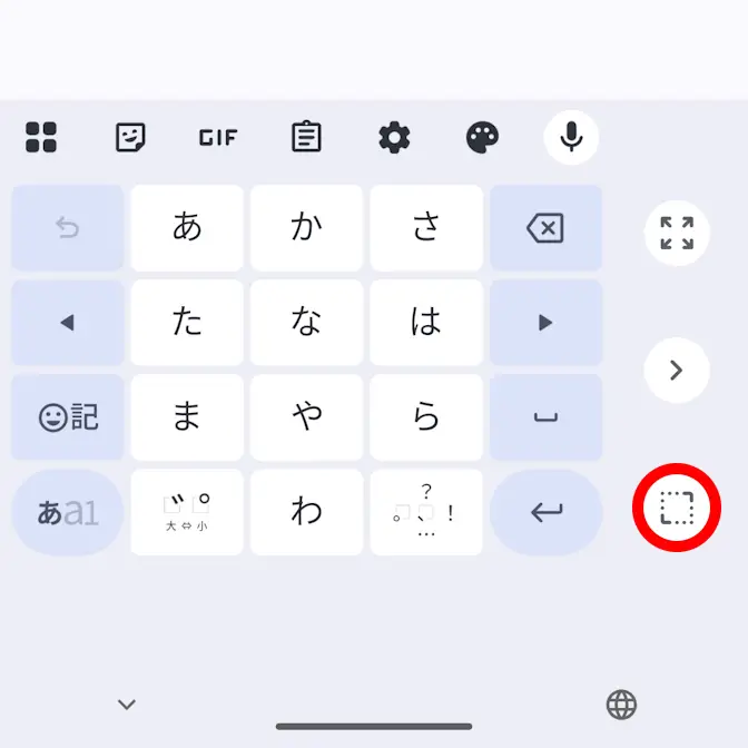 Androidスマートフォンで文字入力する際にはキーボードが左右の端まで画面いっぱいに表示されますが、ディスプレイのサイズが大きく片手で操作しにくければ【片手モード】を使って左端/右端に寄せて小さくすると使いやすくなります。