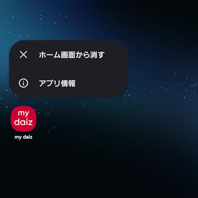 アプリ一覧などからmy daizを長押しし、メニューよりアプリ情報をタップします。