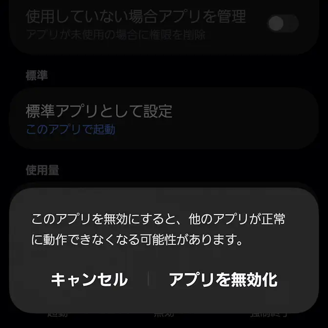 Galaxy→設定→アプリ→アプリ情報Galaxy→設定→アプリ→アプリ情報→無効