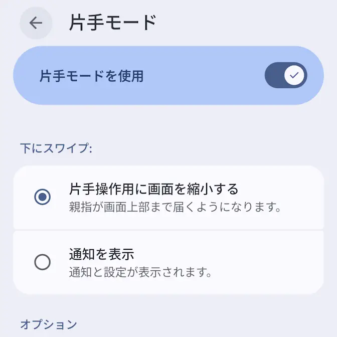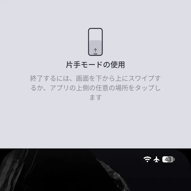 片手モードはデフォルトでオフになっていることが多いので、できない場合には設定よりオンにする必要があります。