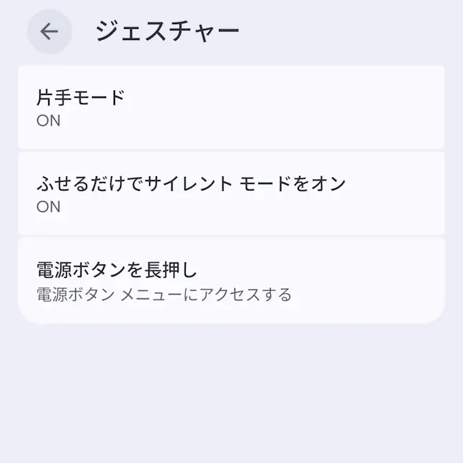 Androidスマートフォン→システム→ジェスチャーAndroidスマートフォン→システム→ジェスチャー→片手モード