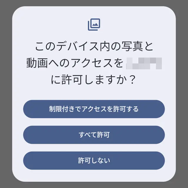 アプリの起動時に表示される(権限)を(アプリ)に許可しますか?より選択します。