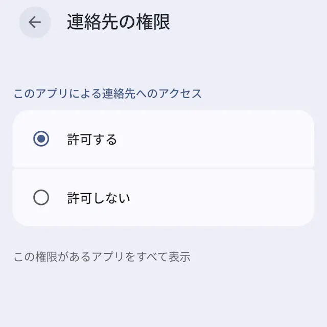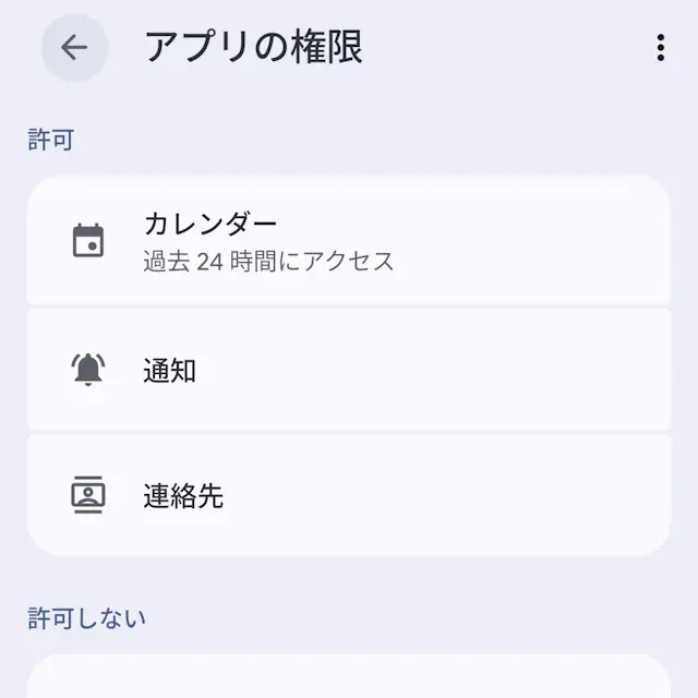 Androidアプリがカメラ/カレンダー/マイク/位置情報/写真と動画などを使用する際、初回起動時に【(権限)を(アプリ)に許可しますか?】とダイアログが表示され[許可する][許可しない]などを選択しますが、設定で後から変更もできます。