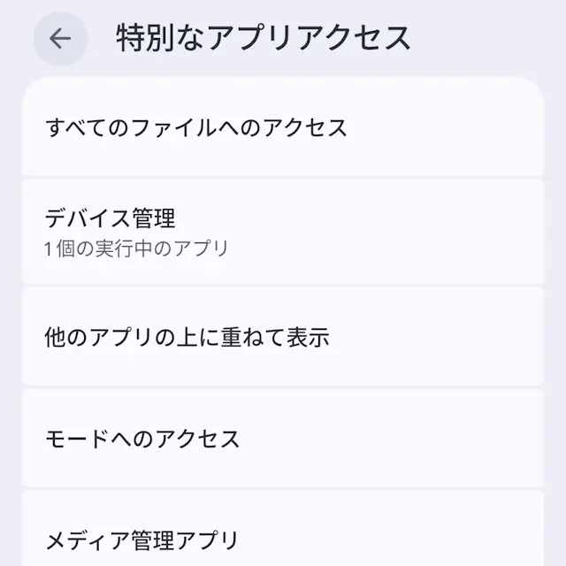 また、その他の権限として特別なアプリアクセスがあり、これも設定より改めて許可する/許可しないを選択できます。