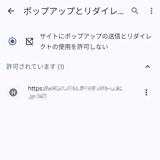 前述したすべてを許可するにおいてサイトにポップアップの送信とリダイレクトの使用を許可しないを選択している場合に有効です。