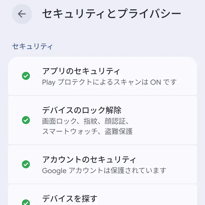 設定のセキュリティとプライバシーよりデバイスのロック解除をタップします。