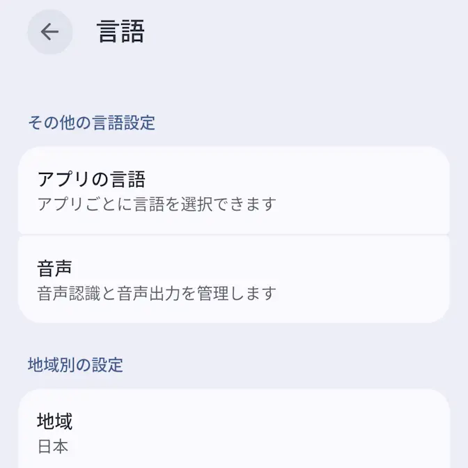 設定はシステムの言語とアプリごとの2ヶ所があります。