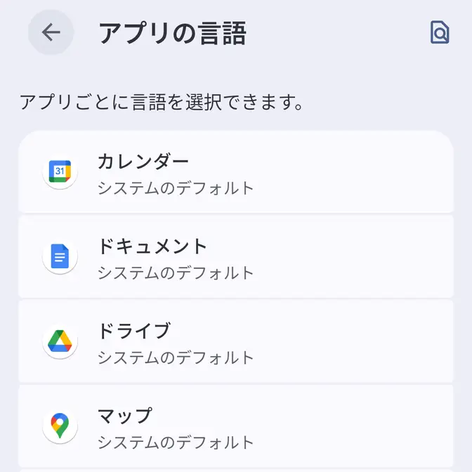 Google PixelをはじめとしたAndroidスマートフォンが[日本語]で表示されるのは【システムの言語】に選択されているからで、設定で他言語(英語、中国語、韓国語など)へ変更できます。また、【アプリごとに変更する】こともできます。