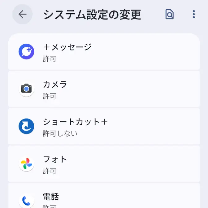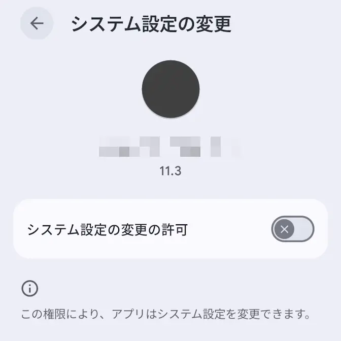 対象のアプリよりシステム設定の変更の許可をタップしてオン/オフを切り替えます(画像はオフの状態)。