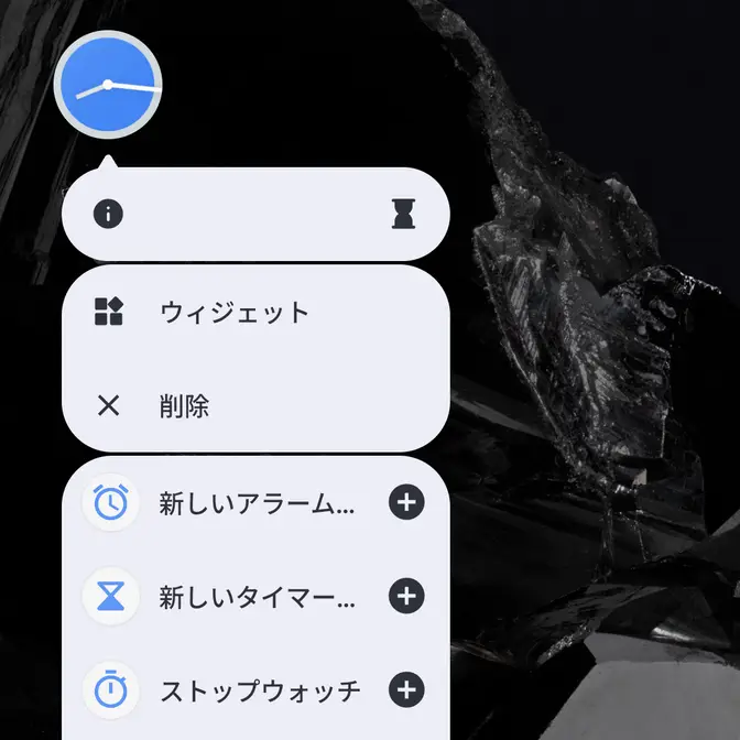 Android 16のGoogle Pixelシリーズにプリインストールされ、Google Playよりダウンロード&インストールできるGoogleの時計アプリを例とします。その他の環境では異なる場合があります。