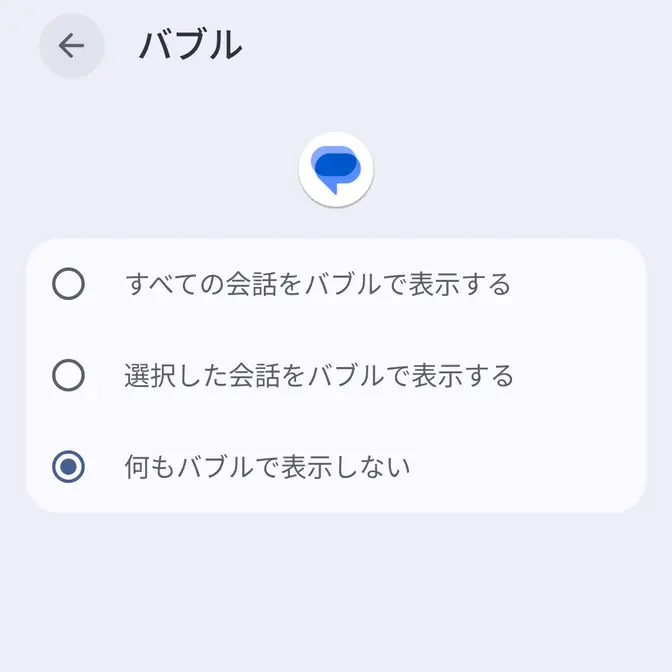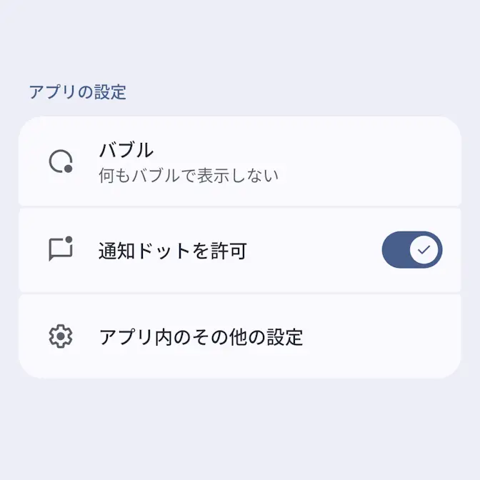 バブルよりアプリにバブルの表示を許可をオフに切り替えます(画像はオフの状態)。