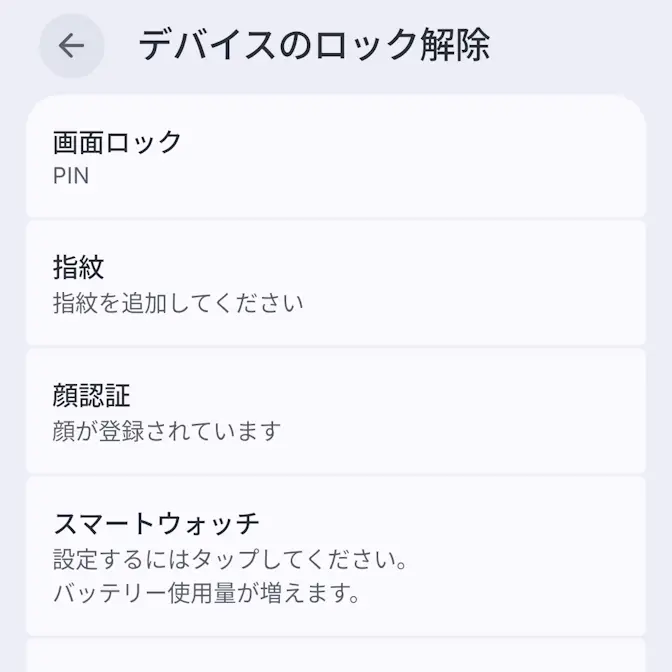 設定セキュリティとプライバシーよりデバイスのロック解除をタップします。