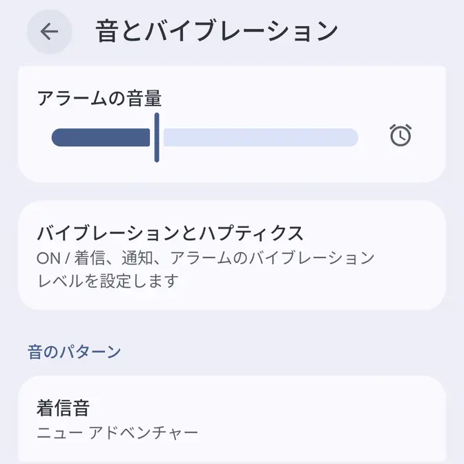 Androidスマートフォン→設定Androidスマートフォン→音とバイブレーション