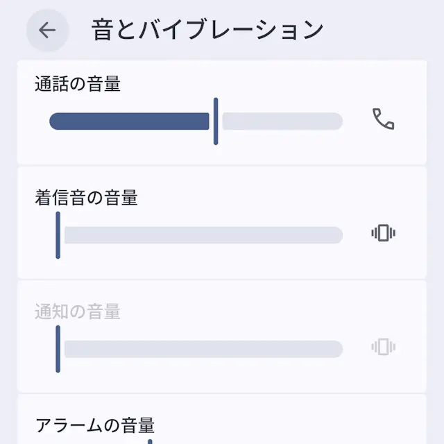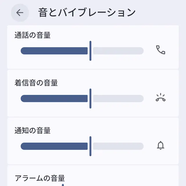 Android 16のGoogle Pixelでは、設定の音とバイブレーションにある着信音の音量に連動しているので、これが“0”であればスクリーンショット音は鳴らないです。
