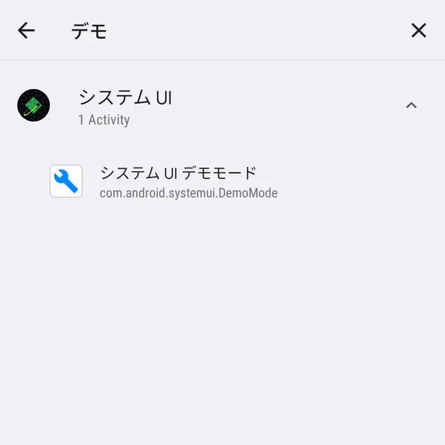 アプリのアクティビティよりシステム UI デモモードをタップします。