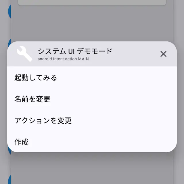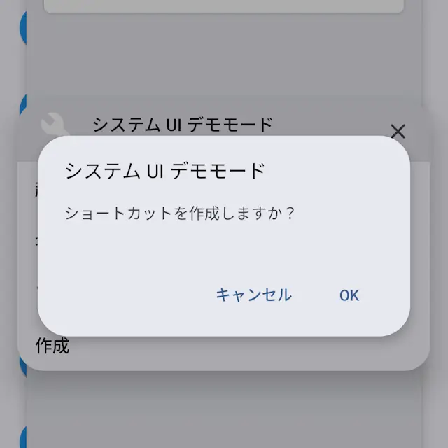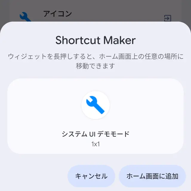 システムUIデモモードよりショートカットを作成>ホーム画面に追加をタップします。