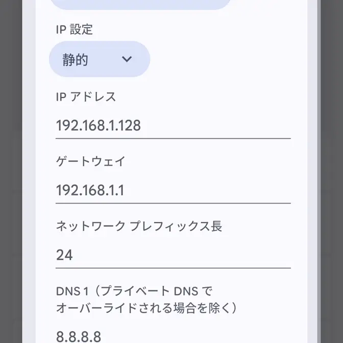 AndroidスマートフォンからWi-Fi接続する際には、Wi-FiルーターのDHCPで自動的にIPアドレス/DNSなどのネットワーク情報が割り当てられることが多いですが、これは一定期間で変更されるので、「固定したい」などの場合には任意に設定ができます。