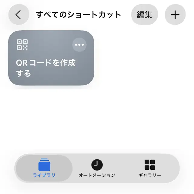 ショートカットアプリのギャラリーよりQR コードを作成するを検索し+をタップして追加します。