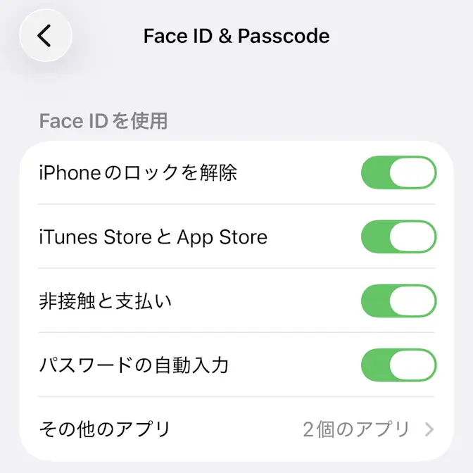 認証のFace ID/パスワードを切り替えるやり方は以上です。