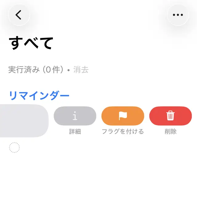 対象のリマインダーを左にスワイプ詳細削除などを操作します。