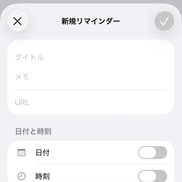 リマインダーアプリの+より新規リマインダーを表示します。