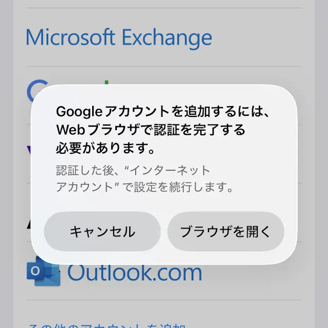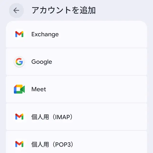 どれをタップしても、目的の画面であるアカウントを追加は同じです。