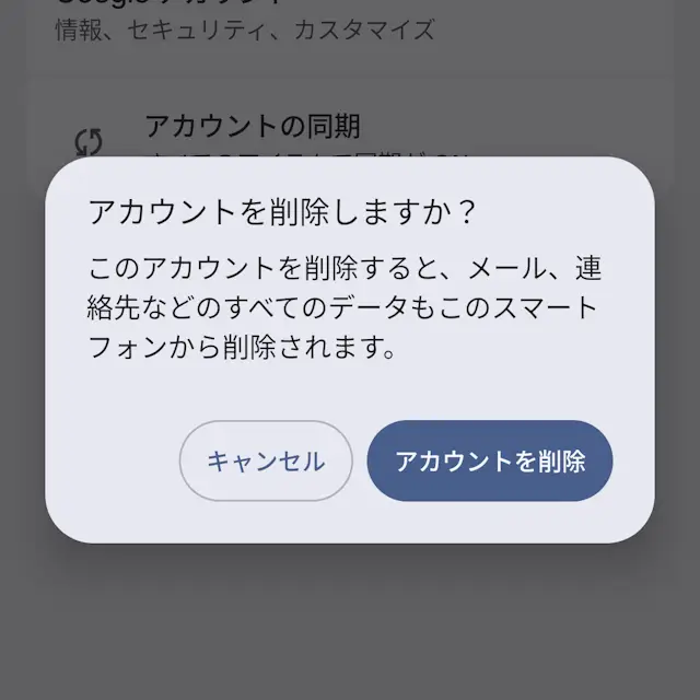 削除とはログアウトの意味であり、Googleアカウントは削除されません。