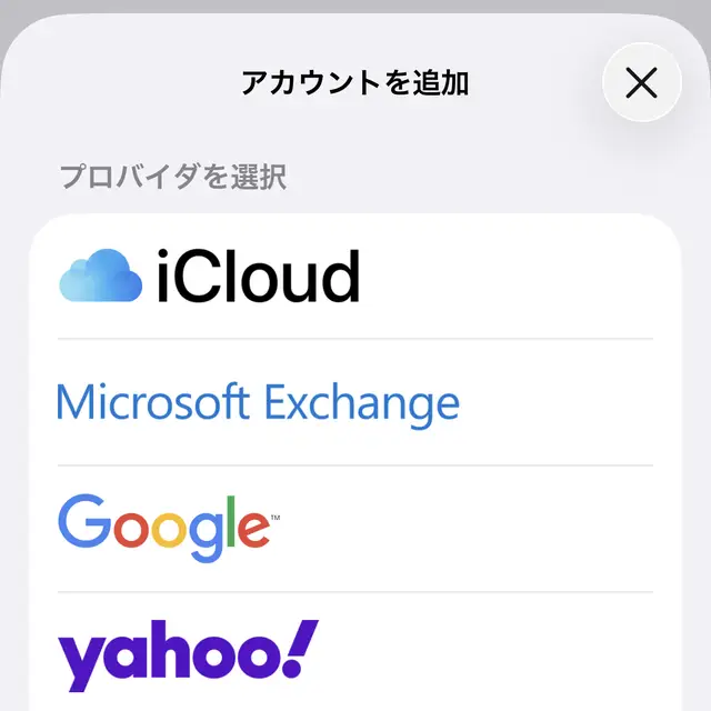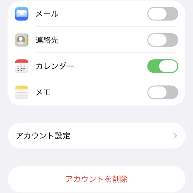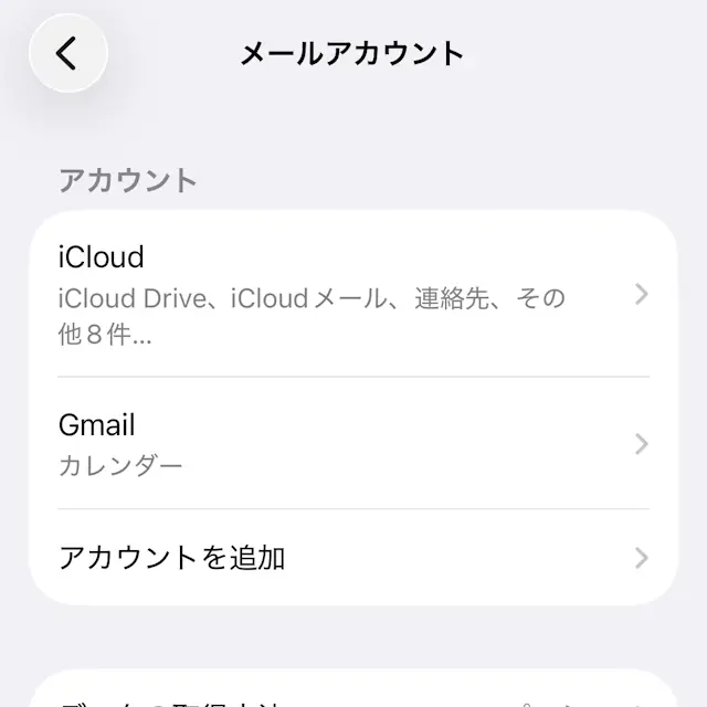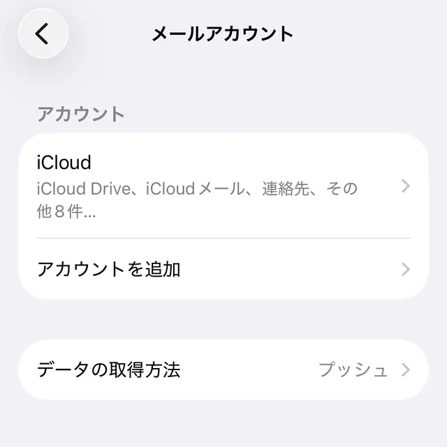 - メール(連絡先/カレンダー)より〇〇アカウントをタップします。