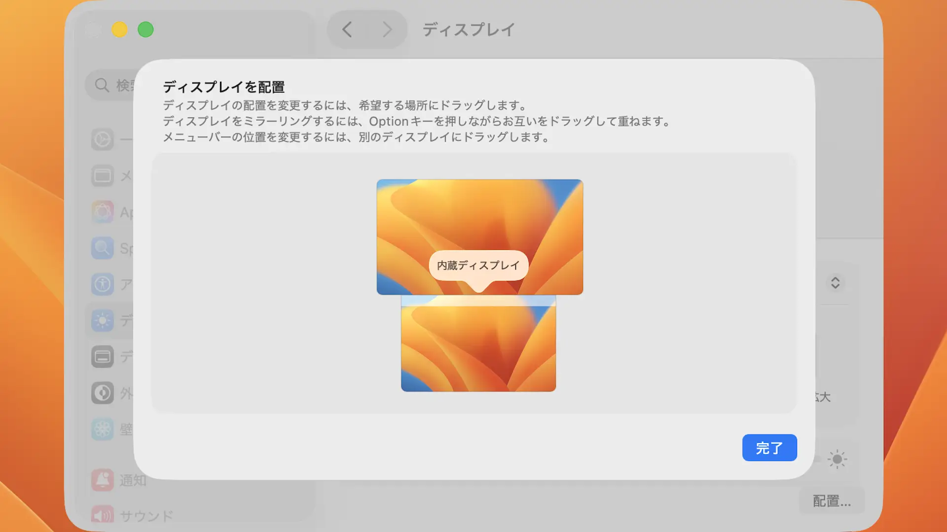 ディスプレイを配置よりディスプレイのイラストをマウスでドラッグし上下左右に配置します。