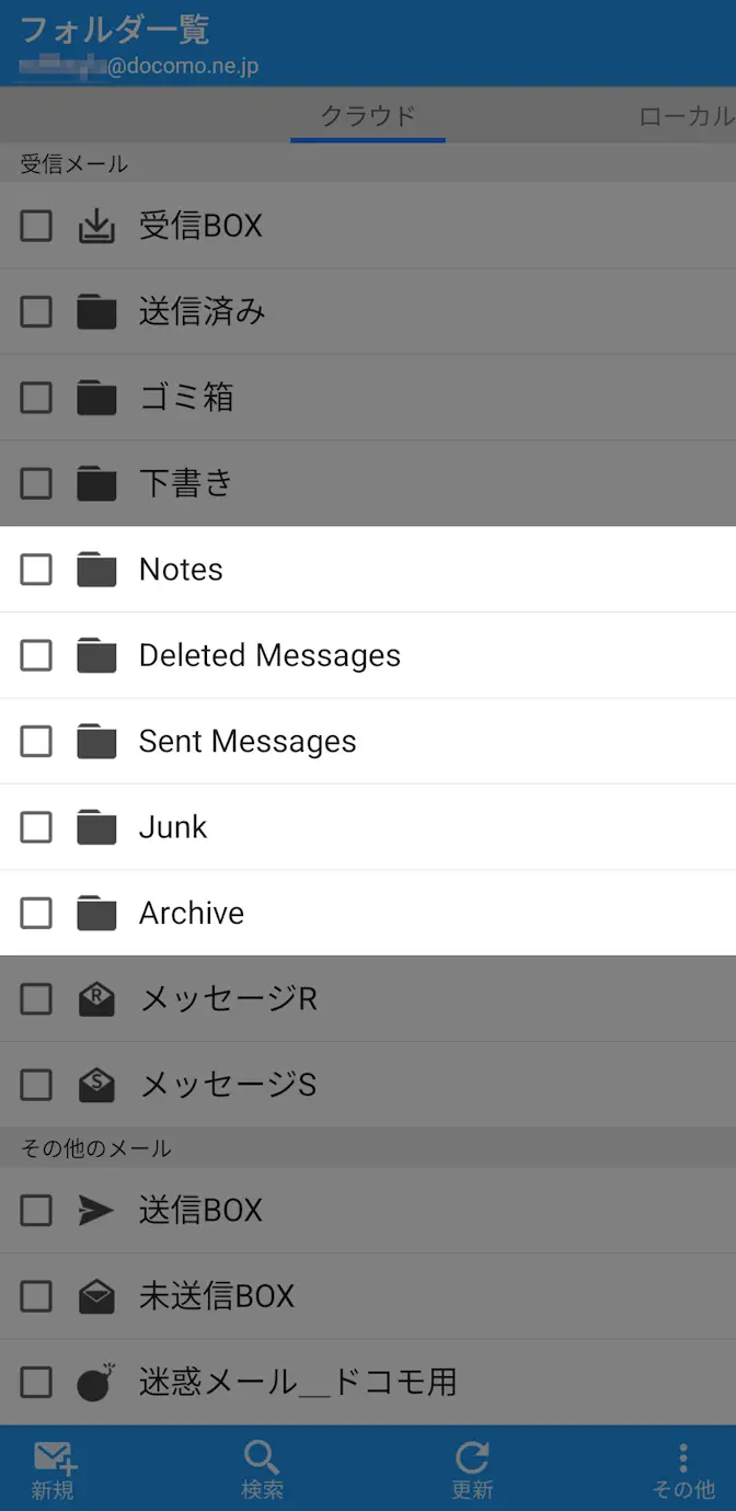 IMAPのメールをメールアプリなどに設定すると[受信トレイ]をはじめ【送信トレイ】【ゴミ箱】のほか[Sent Messages][Deleted Messages]など同じ意味で別のフォルダが表示されることがあります。