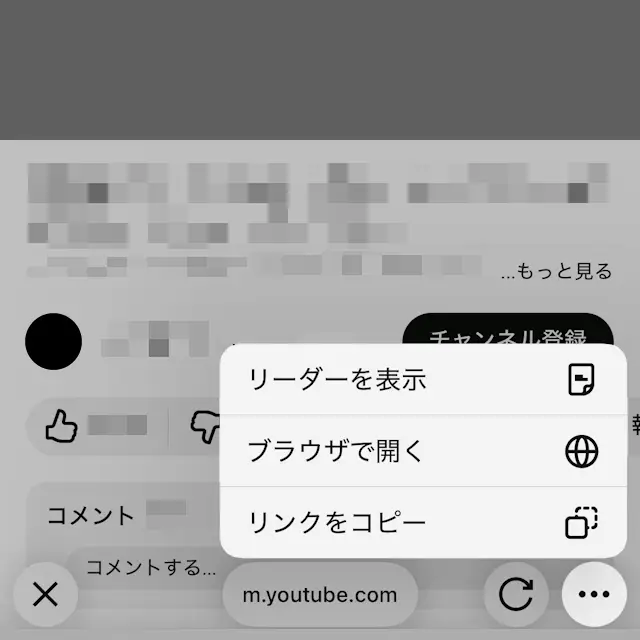 X(Twitter)アプリでポストなどに記載された[YouTube]などのURLをタップした際、特にiPhoneではアプリ内ブラウザで表示されることがありますが、アプリ内ブラウザから対象アプリ(Webブラウザ含む)へ遷移できます。