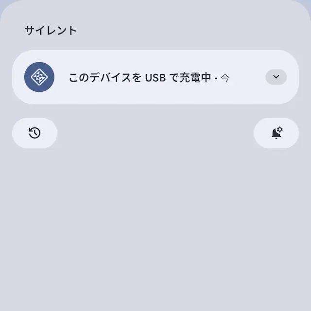 パソコンとAndroidスマートフォンをUSBケーブルで接続し、Androidスマートフォンの通知領域よりAndroidシステム – このデバイスをUSBで充電中をタップしてUSBの設定を表示します。