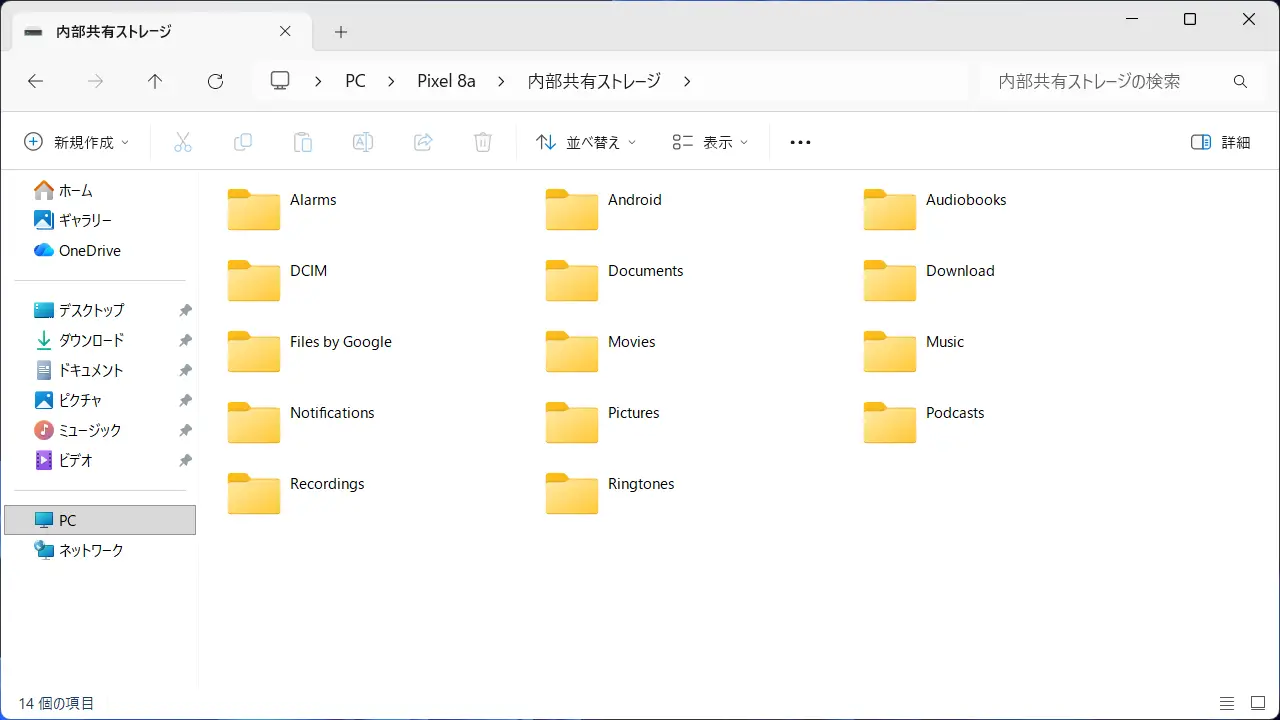 エクスプローラーのPCよりAndroidスマートフォン名をダブルクリックします。