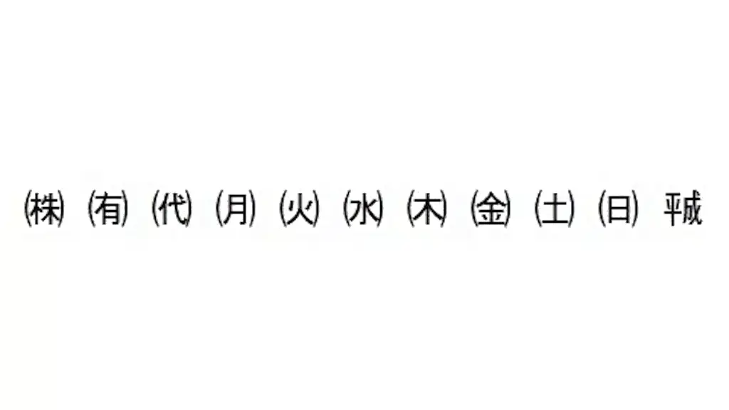 その他にも“(月)”や“(金)”などの曜日表す文字や“昭和”や“平成”など年号を表す文字としても使われています。