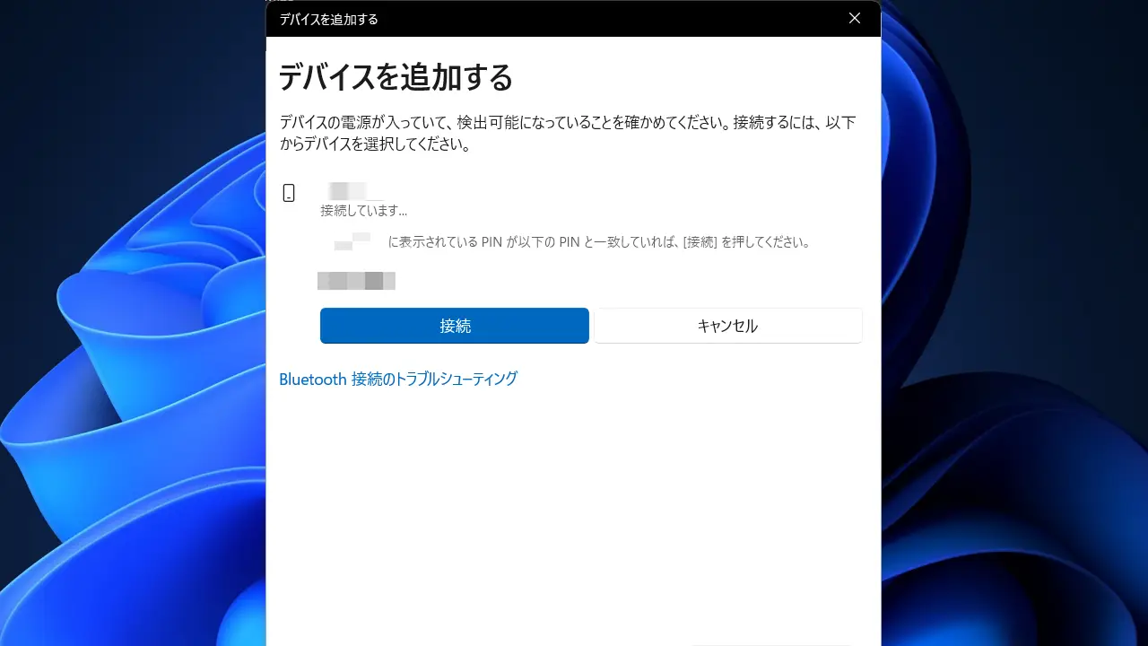 ダイアログに表示された指示に従って操作するとペアリングします。