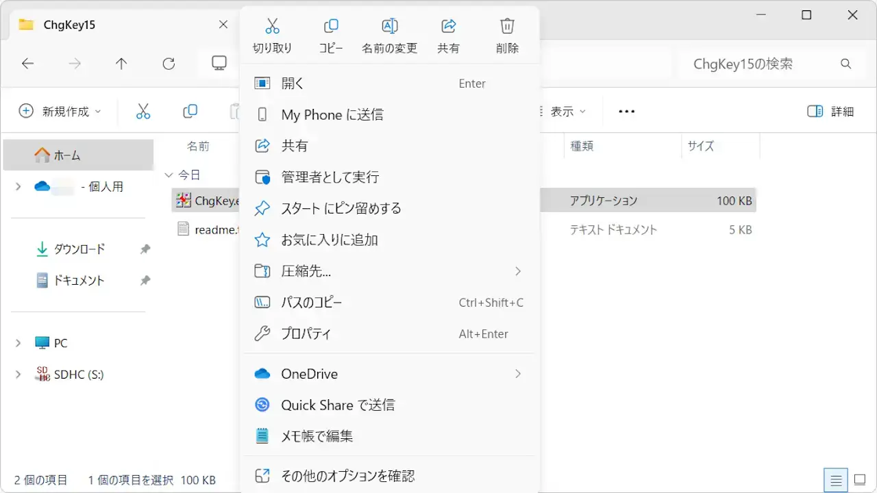 展開した中にあるChgKeyを右クリックし、メニューより管理者として実行をクリックします。