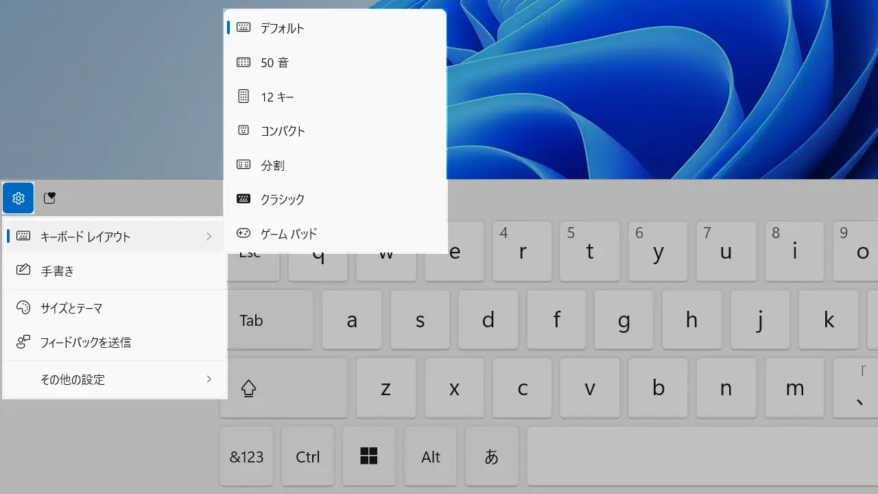 タッチキーボードのよりキーボードレイアウト>12キーをクリックします。