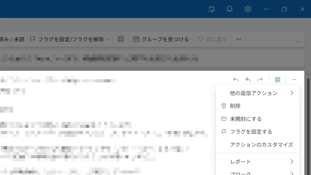 対象のメールよりをクリックしてメニューを表示します。